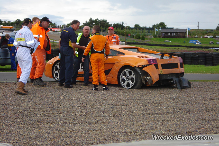 Left the track at very high speed, rear tire blew out and messed up the rear bumper