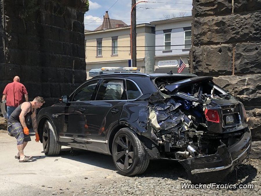 This $200,000 Bentley with only 2000 miles on it was struck by a train at a busy park entrance in Aspinwall fortunately the driver was not seriously injured.