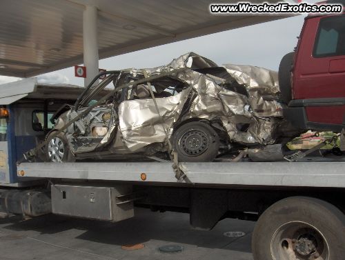 Rolled at 90mph after the driver (a med student in her early 20's) fell asleep at the wheel. this happened between Santa Fe, and Albuquerque NM. the driver was dead at the scene. what you cant tell from the photos is that the roof is pretty much the only thing holding this car together. there were cracks that split the entire way through the unibody assembly in the center of the vehicle.