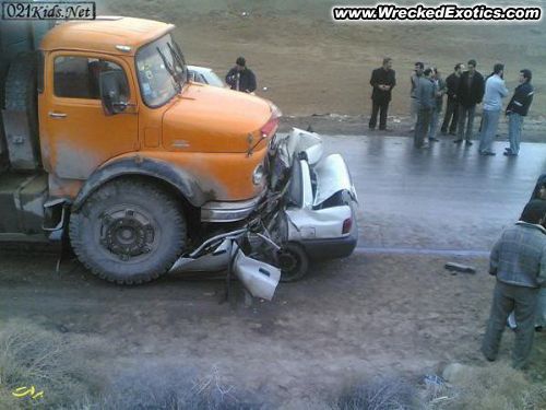 Description: Ouch, it just hurts looking at this head on crash between a compact car and huge truck. Location: |