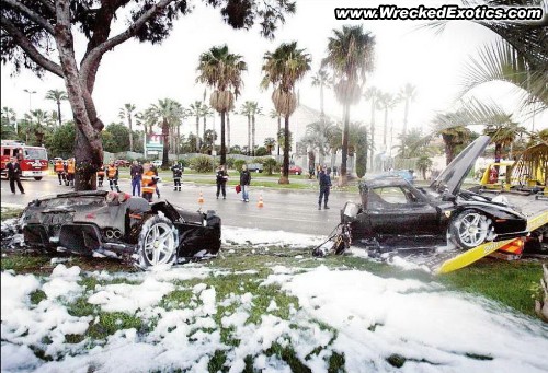 This Enzo was being driven by a member of the Russian parliament, Suleyman Kerimov, who is ranked as the 72nd richest man in the world. He had just purchased the car and was driving it very fast through heavy traffic. The car lost control and crashed into a tree where it burst into flames. The driver suffered severe burns on most of his body and went into a coma. His female passenger also suffered injuries.