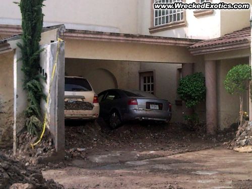 We know the Audi A6 isn't an exotic, but the damage to multimple cars and the expensive mansion make up for it. This is the result of a massive flood.