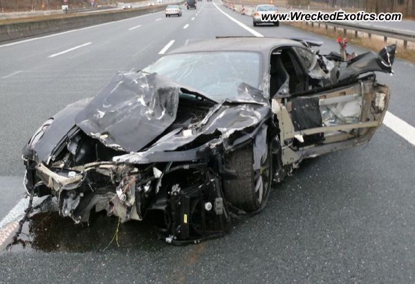 Car lost control on the Autobahn, crashed and flipped over.