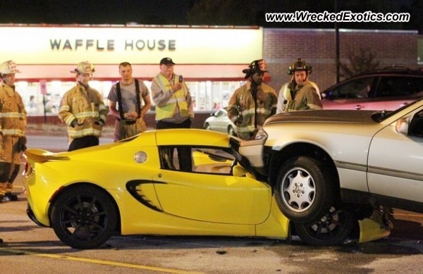 Out for an evening ride, pulled into the median to make a left turn and bam the Mercedes ends up on the hood and almost crushes the passenger with its wheel. Driver says he did not see the bright yellow car. No injuries!