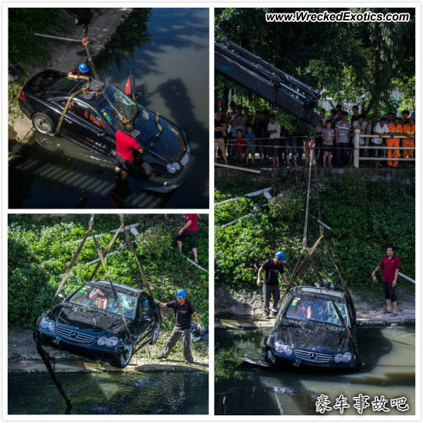 Description: Mercedes tried to dodge electric bikes, but ended up in a sewer ditch.
