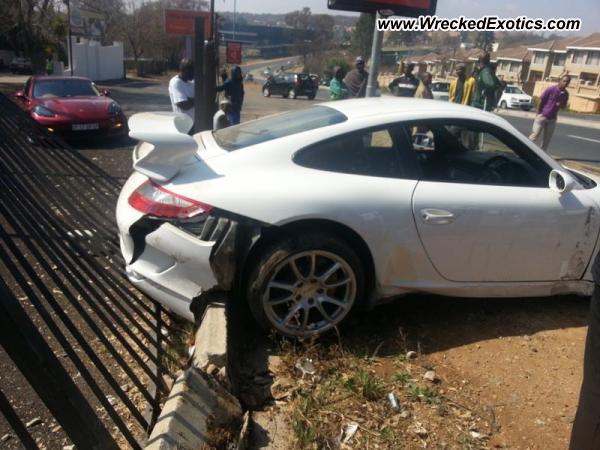 The guy who was driving it was on a test drive with a salesman when things went horribly wrong. Hit bumps in the road at high speed and ended up slamming into the curb and then into a palisade fence. Some fairly heavy damage on the car especially at the back and rear axle.