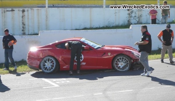 The accident happened at the Autodromo Oscar Cabalen. The Ferrari came out of the last corner wanting to overtake a Porsche 911, but the driver lost control and hit the wall. The damage was considerable: tires, suspension, bumpers, body.