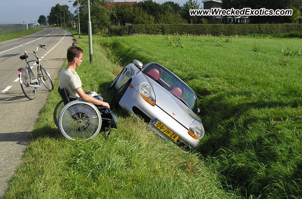 Note: The guy in the wheelchair is the driver and owner of the Porsche, the car was adapted to driving without pedals.