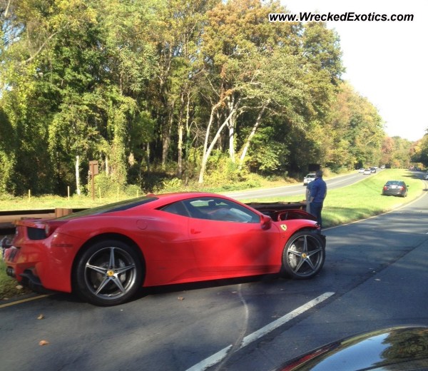 This Ferrari 458 Italia unfortunately lost control and slammed into the guardrails badly damaging front, side and rear of the Italian supercar. Witnesses say no other cars were involved and that the 2 occupants of the Ferrari were not injured.