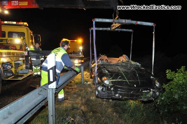Description: This Edo Competition Ferrari 599 GTB was borrowed when the driver lost control, flew through the air and into a ditch.