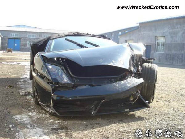Description: Lamborghini took a curve too fast and crashed into a tree.