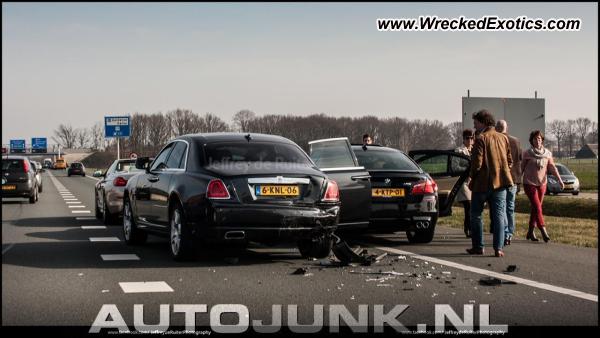 Description: An exotic car meetup turned into carnage, as an Audi S5, BMW M5, and Rolls Royce Ghost slammed into each other on the highway.