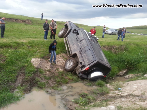 The Hummer tried to pass over a small bridge which eventually colapsed under the car's heavy weight, causing the Hummer to crash into the ditch bellow. Nobody was injured. The car was successfully pulled out by a tractor