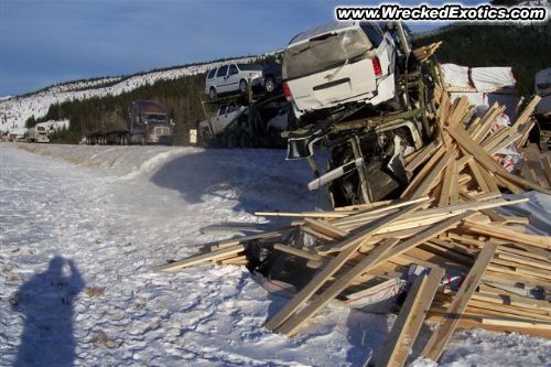Huge crash involving 4 tractor trailers. One of the trucks was carrying brand new SUV's, one was hauling lumber. This occurred in Jasper National Park in Alberta, Canada